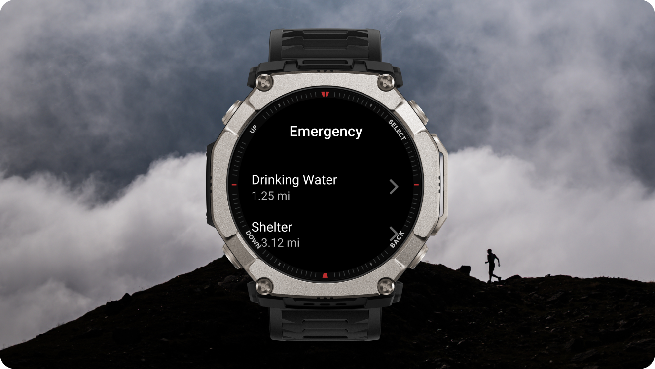 需要補給水源、臨時避護,或尋找返回登山口的路徑?透過 POI 搜尋功能定位周邊重要地點,並依靠腕上導航功能,安心前往目的地。