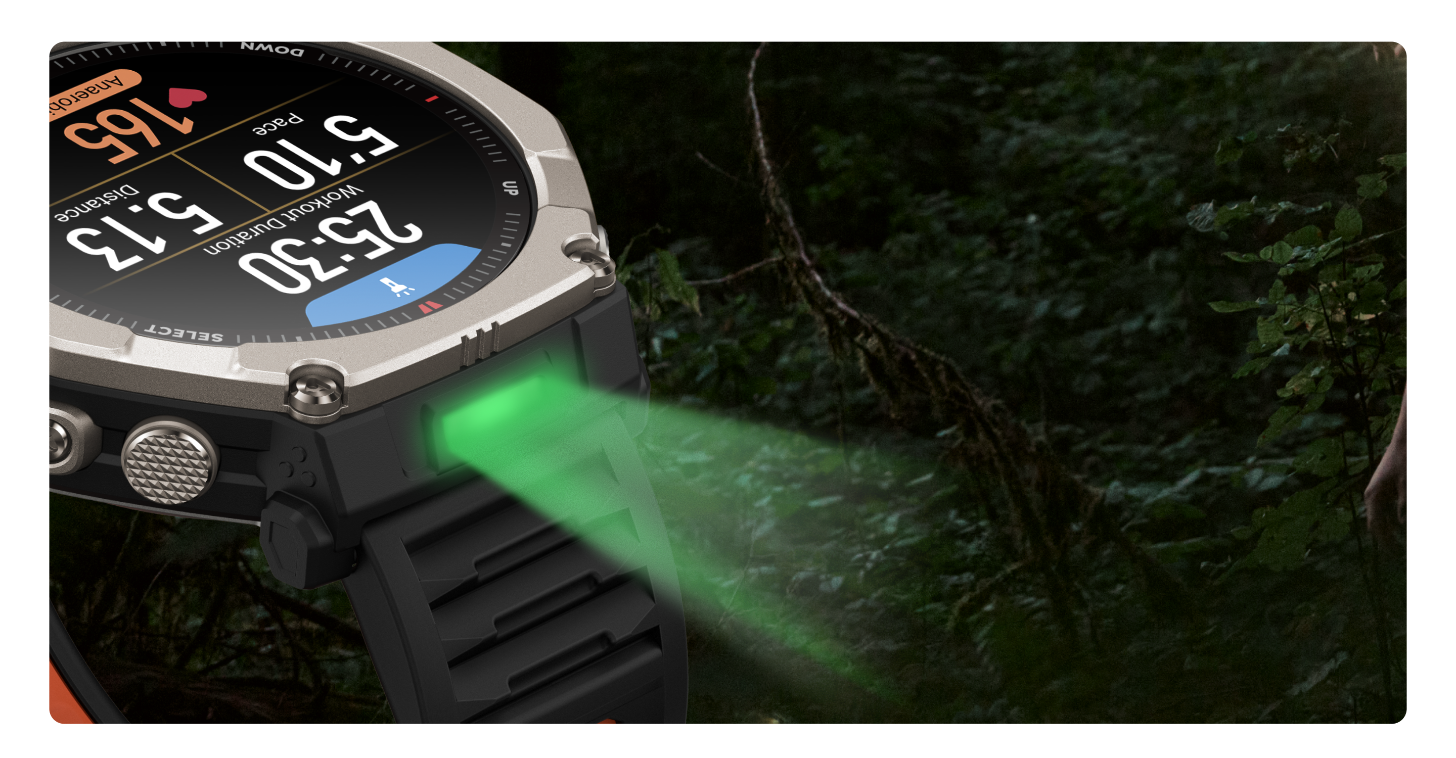 專為不可預測的夜晚與突發狀況而設,雙色手電筒確保你在低光環境下依然清晰可見。可選擇綠光以降低干擾並獲得更寬廣細緻的視野,亮白光提供清晰照明,或切換至 Boost 模式以獲得更強勁的照明效果。內建 SOS 訊號功能,無論身處何地,都能增添一份安心保障。