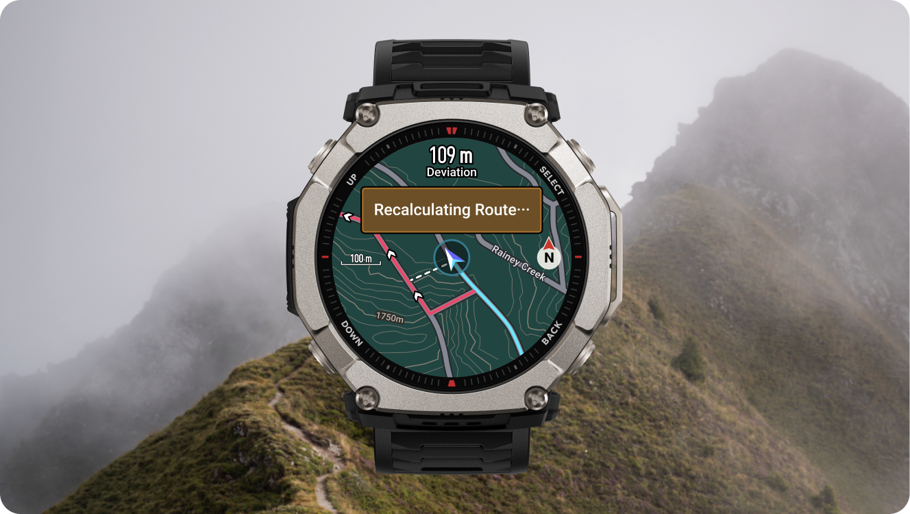 可直接於手腕上建立點對點路線⁴,利用預載地圖規劃更智慧的穿越路徑與更高效率的攀升路線。當環境條件改變時,可即時調整路線,無需取出手機或擔心連線問題。